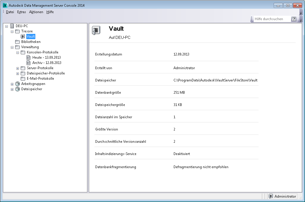 - Version von Autodesk Vault Server, die zum Erstellen des Tresors verwendet wurde