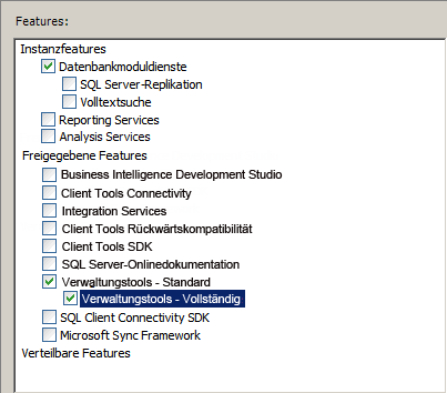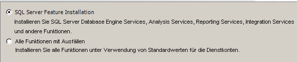 - Wählen Sie beim Setup die Option SQL Server-Funktionsinstallation.