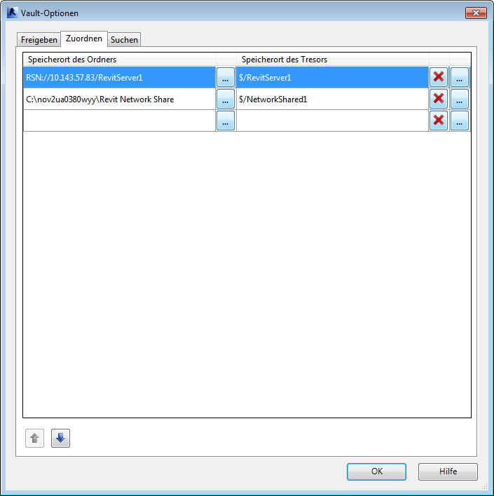 Im Dialogfeld Vault-Optionen auf der Registerkarte Zuordnung können Sie jeden lokalen Ordner, Netzwerkordner oder Ordner auf dem Revit Server einem Ordner in Vault zuordnen.