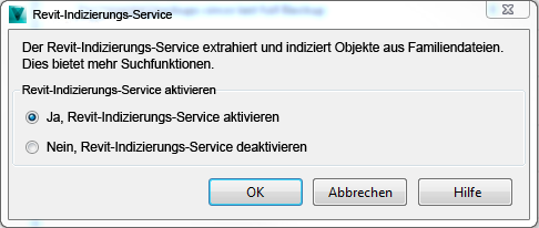 Sie können den Revit-Indexing Service auch im Menü Aktionen auswählen.