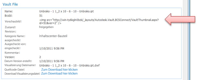 Wenn Erstellen/Aktualisieren für AdskVaultFile ausgeführt wird (siehe unten), werden die Profilseiten überschrieben, und die Miniaturansichten werden möglicherweise nicht korrekt angezeigt. Damit die Miniaturansichten wieder korrekt angezeigt werden, muss die Profilseite XSL manuell aktualisiert werden. Es gibt eine Reihe von Methoden für die Aktualisierung. Alle Methoden erfordern Kenntnisse im Umgang mit Profilseiten und XSL-Konfigurationen. Der unten aufgeführten Vorgang erfordert Microsoft SharePoint Designer 2010, der online über Microsoft verfügbar ist.