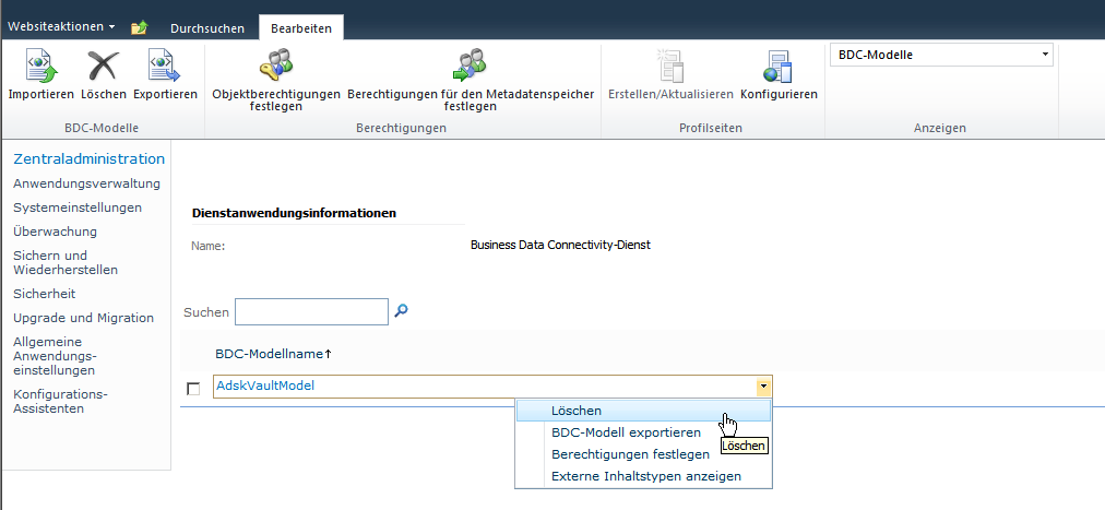 Exportieren der Datei AdskVaultModel.bdcm von SharePoint