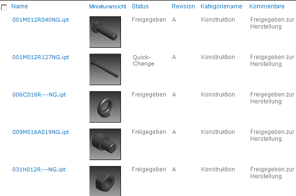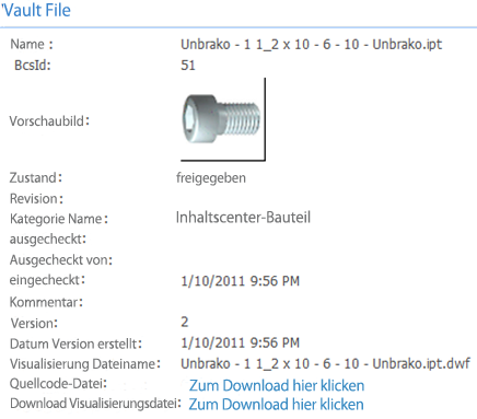 SharePoint-Benutzer können Visualisierungsdateien aus Autodesk Vault mit der SharePoint-Benutzeroberfläche suchen, auflisten, verknüpfen und herunterladen.