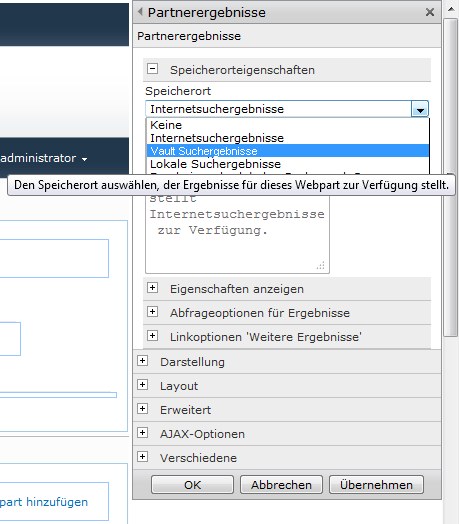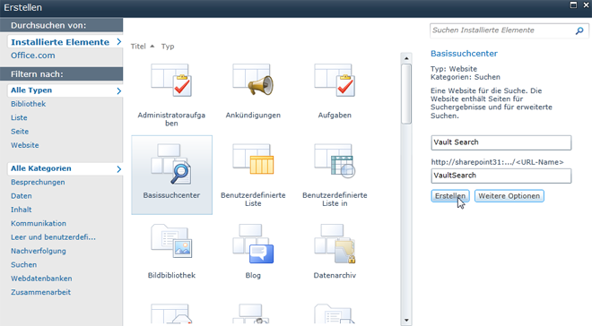 Hinzufügen von Vault als die Suchquelle