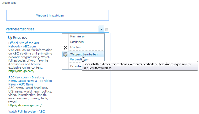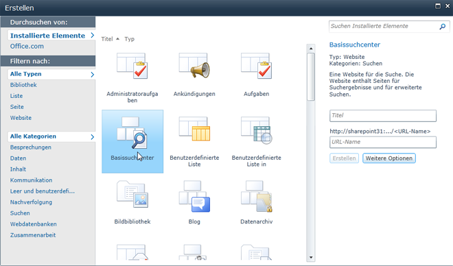 Konfigurieren einer Suchwebsite