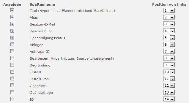 | Eigenschaften des Änderungsauftrags | Spalten der Listenansicht | Profilseite |