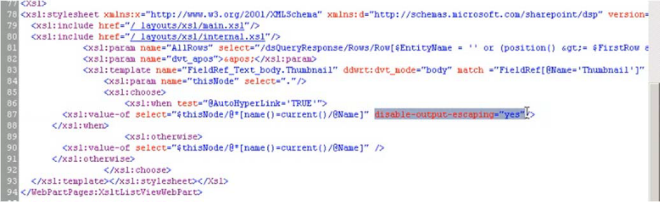 disable‐output‐escaping=”yes”