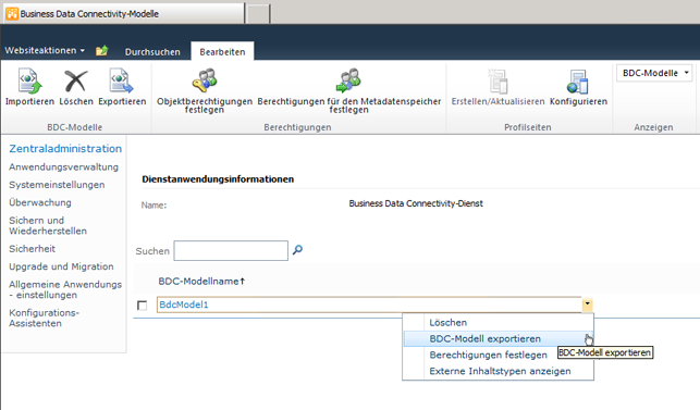 Führen Sie diese Schritte aus, um die Datei AdskVaultModel.bdcm aus SharePoint zu exportieren.