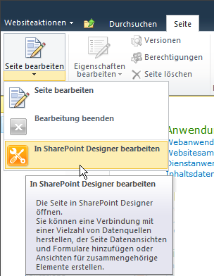 Klicken Sie in SharePoint Designer auf Seite