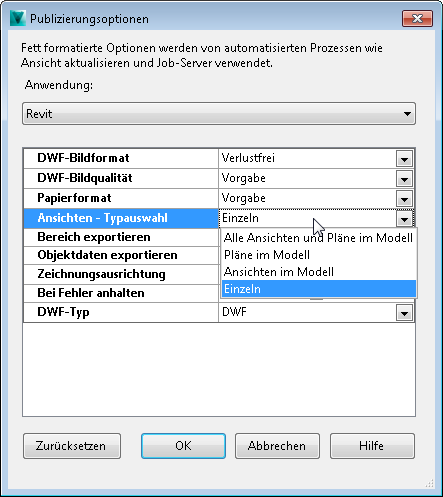 Gibt an, ob es sich bei der erstellten Datei um eine DWF- oder DWFx-Datei handelt. |