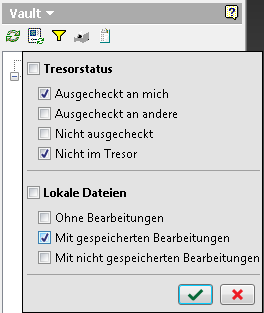 Sie können die im Vault Browser aufgelisteten Dateien über das Menü Filter filtern.