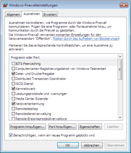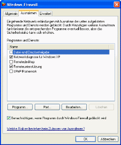 Windows Server 2003 Firewall-Einstellungen