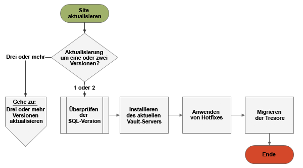 Die Aktualisierung um eine oder zwei Versionen schließt eine (1) Installation von Vault Server ein. Die Aktualisierung um drei oder mehr Versionen erfordert Zwischeninstallationen von Vault Server.