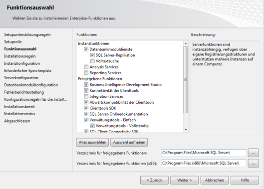 - Unterstützungsdateien für das MS SQL Server-Setup