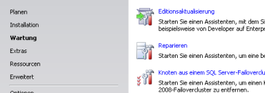 - Starten Sie die Datei Setup.exe der Vollversion von SQL 2008 über den Installationsdatenträger. Wählen Sie die Wartungsoption, und starten Sie den Assistenten für die Editions-Aktualisierung.