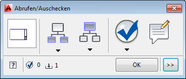 Klicken Sie auf die Schaltfläche zum Erweitern, um zwischen der reduzierten und erweiterten Ansicht des Dialogfelds Abrufen/Auschecken zu wechseln. |