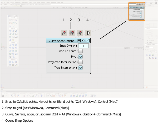 Alias offers similar snapping tools to those found in Rhino.
