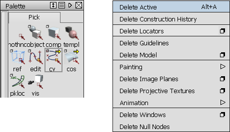 Visual feedback as mouse rolls over Pick CV (left) and Delete Locators (right)