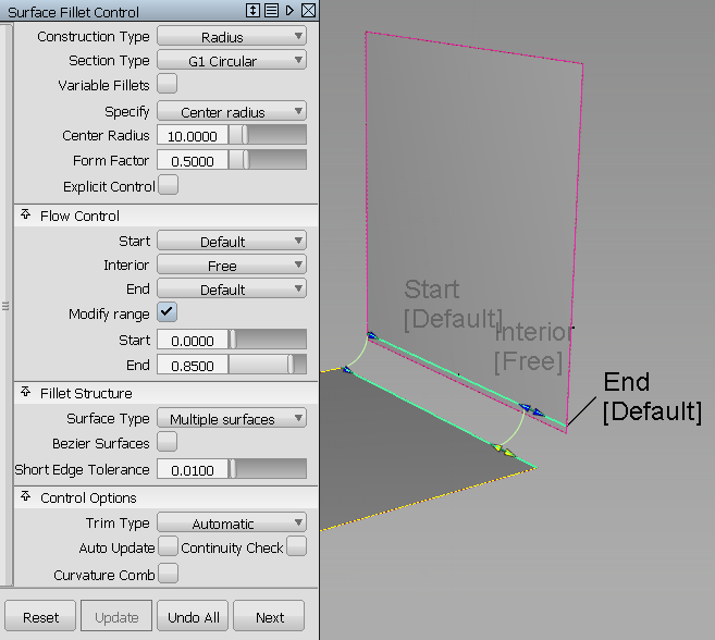 Geometric dependency and association. If a curve upon which a surface is based is modified, the surface is modified. the surface updates interactively when the Preferences