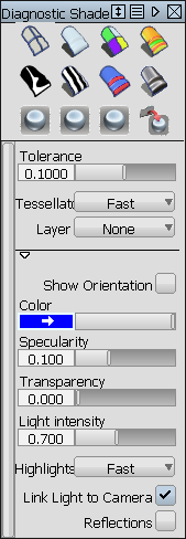 The Diagnostic Shading tools apply to the selected objects if any, or to all the visible objects when none are selected.