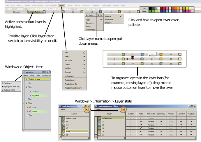 Objects can be organized by layers to help you work more efficiently. Layers can be set to Reference (data is visible but grayed out, and can be snapped to) or Inactive (data is grayed out but cannot be snapped to).