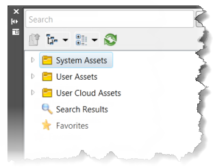 The Asset Browser provides access to System Assets, User Assets, Cloud-based Assets, and asset search results.