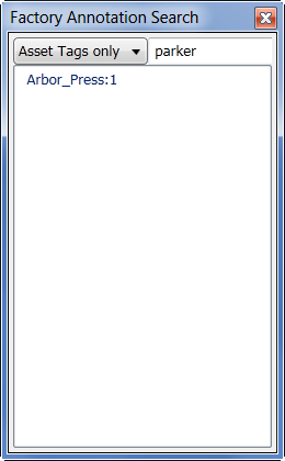 Visibility.  The Search function helps you locate all assets or inserted components with a specific asset tag, descriptor, or both. Only a portion of the annotation need be entered for search purposes, and both upper-case and lower-case characters are acceptable.