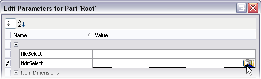 When you specify a SelectFolder editor, a Browse icon appears in the related Value field in the Part Editor.