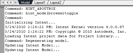 Intent system messages prints startup notifications, warnings, and alerts, and logs all error messages to the AutoCAD command window.
