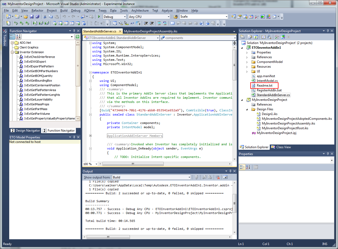 The image below shows what a user might typically see after creating the Inventor Add-in project.