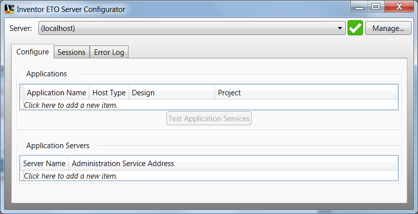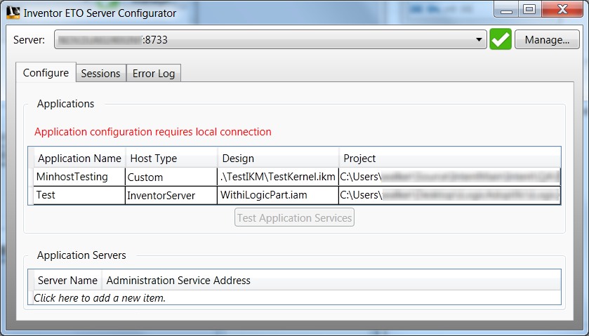 Inventor ETO Server Configurator provides the means to monitor remote servers. Additional defined servers display in the Server drop-down list. To define a new remote server, click <Select Server…> on the list.