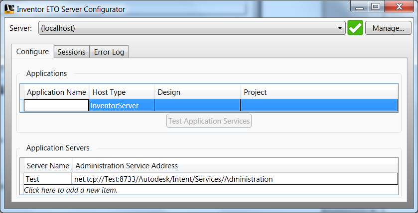 To add an Application Server, click Click here to add a new item. Enter the Server Name and Administration Service Address, as shown in the following image. Press Enter to commit the changes.
