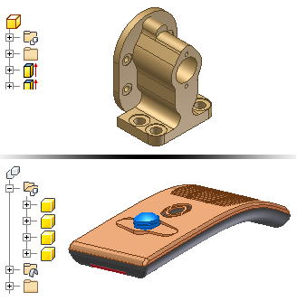 The following image shows a single body part (upper half of the image), and a multi-body part (lower half of the image). Notice the different part icons in each image.