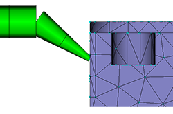 - To check the connectivity of the runners with the cavities, click the element at the top of the sprue. Then click Show in the Mesh Connectivity Diagnostic dialog.