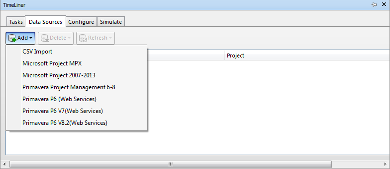 Note: Due to the nature of the Primavera Project Manager 6 products using the SDK for data access, importing data with TimeLiner can take a longer period of time than other formats.