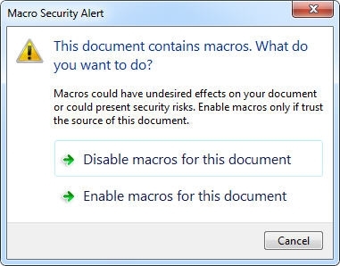 - Macros - When running on folders you might be prompted with a dialogue box for each file similar to the following: