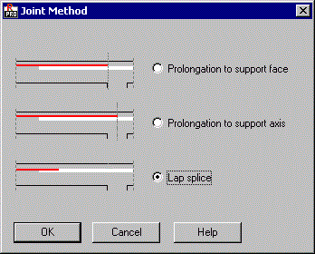 The Joint Method dialog box, shown in the drawing below, is opened after pressing the Joint Method button located in the Assembly Reinforcement field (the Reinforcement Pattern for RC beams dialog box, the Structure Reinforcement tab).