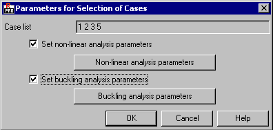 Click Set Parameters in the Analysis Type dialog (the Case list field may not be left blank) to define parameters of the non-linear or buckling analysis for the list of cases.