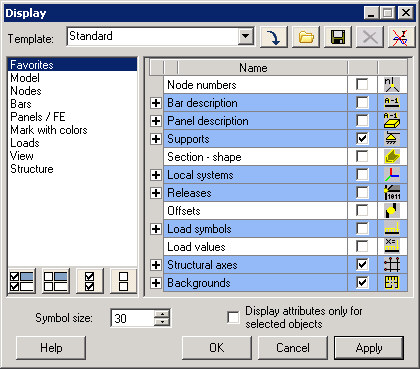 The Attribute display selects structure attributes to be presented on the screen. The dialog only displays if the .NET component is installed.