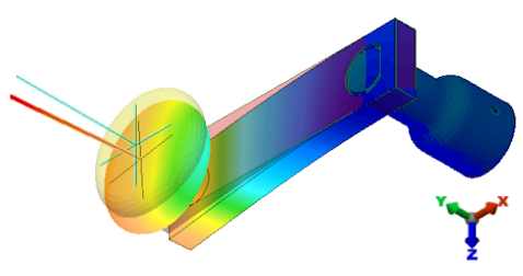 Next, we will look at the displacement results with a transparent view of the undisplaced shape superimposed on the displaced view. Then, we will look at the von Mises stress results.