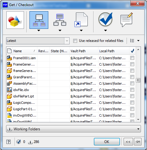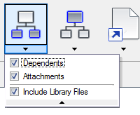 When downloading or checking out a file, you can specify whether any related files are also downloaded or checked out. The VDF supports relationships for including child relationships, parent relationships, or files brought in through links.