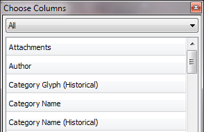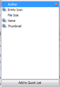 The column quick list provides easy access to often-used columns, so they can be shown or hidden in the grid. ![]() |