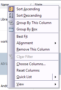 The context menu for each column header provides a number of options for customizing the information presented in that column. ![]() |