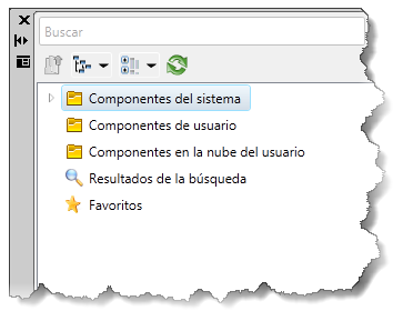 El Explorador de componentes proporciona acceso a los Componentes del sistema, los Componentes de usuario, los Componentes basados en la nube y los resultados de búsqueda.