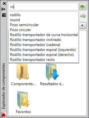 Después de realizar una búsqueda, se añade una carpeta de resultados de la búsqueda al explorador de componentes. La carpeta contiene el componente encontrado. El componente permanece en la carpeta hasta que se lleva a cabo la búsqueda siguiente y se reemplaza con el nuevo resultado de la búsqueda. Un componente se puede seleccionar desde la carpeta de resultados de la búsqueda y se puede colocar en el layout de la fábrica.