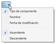 Para acelerar la búsqueda de un componente, ordene los componentes por tipo, nombre o fecha de modificación. También puede elegir que los componentes se muestren en orden ascendente (valor por defecto) o descendente. El método de clasificación que elegido es persistente; es decir, permanece en vigor durante las sesiones posteriores de AutoCAD Factory. Haga clic en la flecha abajo en el icono de