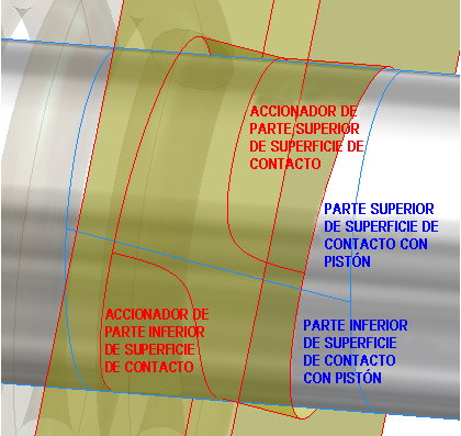 En la imagen siguiente, observe que las superficies del pistón y el accionador están divididas en varias caras. De este modo, las superficies de contacto se definen de forma más explícita.