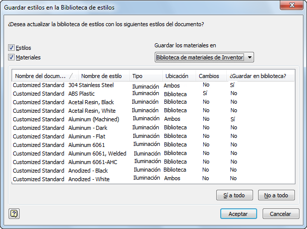 Paso 4: guarde los estilos personalizados de plantilla personalizada en la biblioteca de estilos. Pulse la ficha Gestionar > estilos y normas > Guardar comando para mostrar el cuadro de diálogo Guardar estilos en la biblioteca de estilos. Por defecto, todos los estilos locales tienen establecido "Sí" en la columna "Guardar en biblioteca". A continuación, confirme si desea guardarlos en la biblioteca de estilos. También puede buscar "local" en la columna Cambios y " "Ambos" en la columna Ubicación. Esto significa que este estilo se encuentra tanto en la biblioteca de estilos como en local, pero que su valor es diferente. De modo que debe decidir cual de ellos necesita. Consulte la figura 5. Si mantiene valores diferentes aparecerá el cuadro de diálogo de advertencia cuando se cree un archivo nuevo basado en él. Consulte la figura 6.