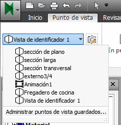 Seleccione la ficha Punto de vista grupo Guardar, cargar y reproducir opción de menú desplegable Puntos de vista guardados y elija el punto de vista que desee recuperar.