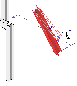 - Ajuste la posición de la base del pilar con el punto final del pilar. Si el pilar está configurado como Inclinado - Controlado por punto final, podrá ajustar la elevación de la base del mismo mediante la flecha vertical o los controles de texto.